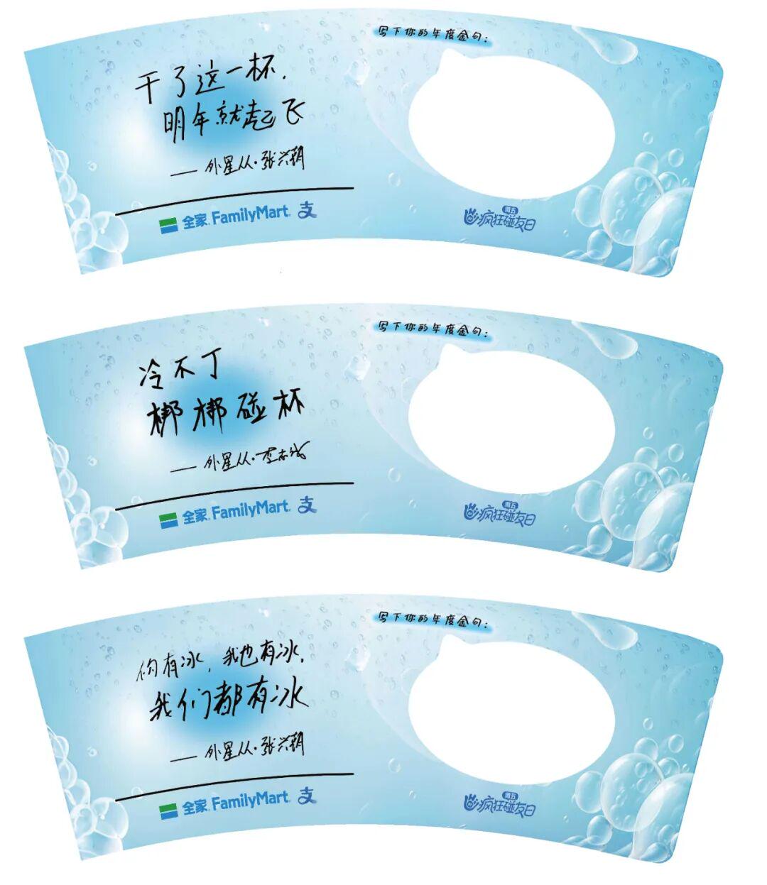 再往前看,支付宝碰一下到底搜罗了多少“大文豪”创作走心神句?去全家便利店碰一碰,有人解锁了杯套上张兴朝谐音梗文学:「你有冰,我也有冰,我们都有冰」;在江浙地区十足便利店上新热饮上,挂着鲁豫留下的「先暖一下,再想别的」的暖心金句。