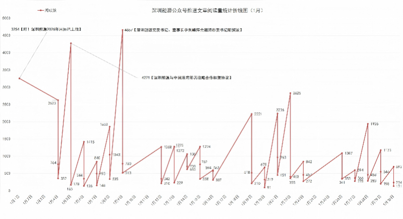 在整体收缩的背景下,深圳能源发文量减少近四成,阅读量、平均阅读、互动数据均实现逆势增长,呈现“减量提质”特征。以下将从其1月、2月的数据表现与内容策略展开具体分析。