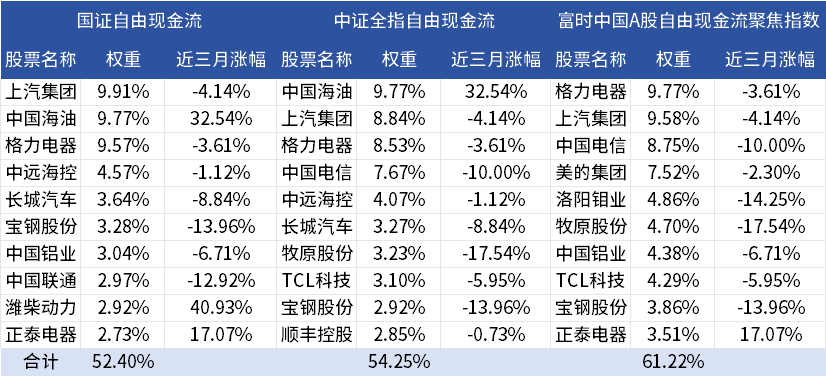 三是前十大重仓股合计占比不低,均超过50%。需留意重仓行业、重仓股票波动给指数带来的影响。比如国证自由现金流指数和中证全指自由现金流指数重仓的石油石化等周期性行业此前出现大涨带动指数上涨,但重仓行业的调整压力也不容忽视。