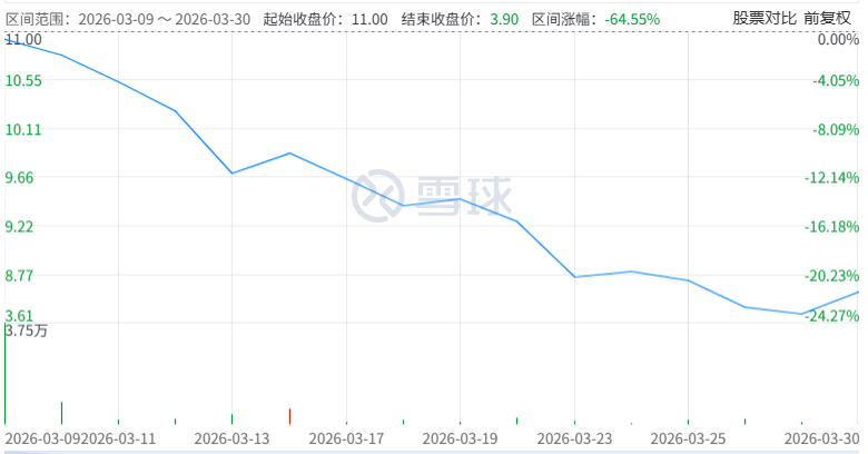 此后其股价持续走弱,截至3月30日停牌前报3.9港元,较发行价跌去约64.5%,总市值缩水至约3.52亿港元。