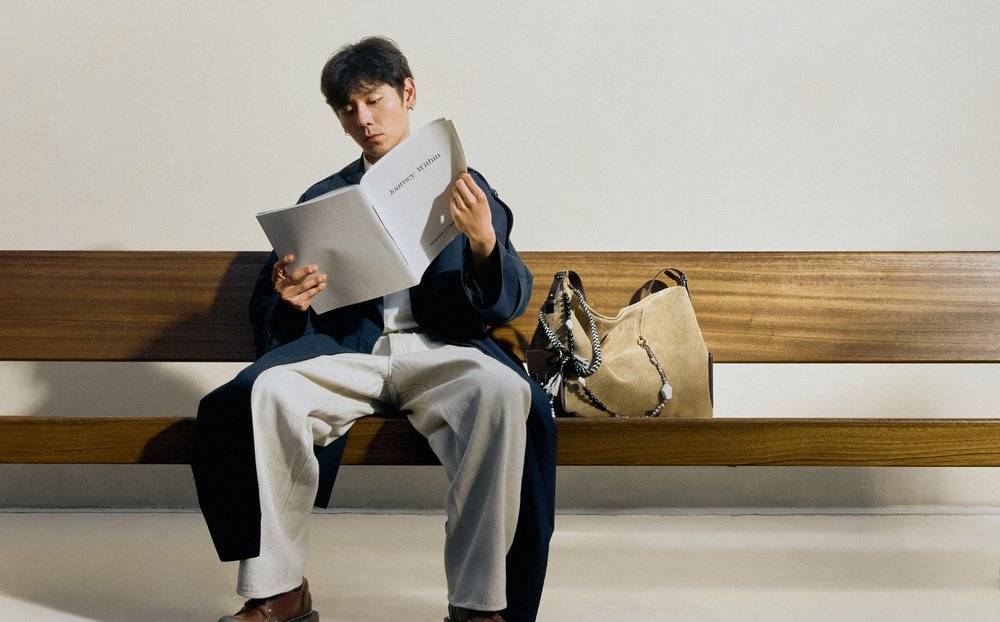 作为一个演员、舞者,尹昉有一股用身体感受、以人生入戏的通透与真诚。在淮海中路旗舰店升级开幕日,“实习店长”尹昉身穿Songmont成衣、背着棱编托特包,这款灵感源自千佛洞石窟壁画的包包经过整皮剖缝再手工穿引,形成富有秩序与肌理的棱编结构,契合了尹昉温润的气质和不急不躁的生活姿态,也与品牌追求真实和质朴的调性不谋而合。