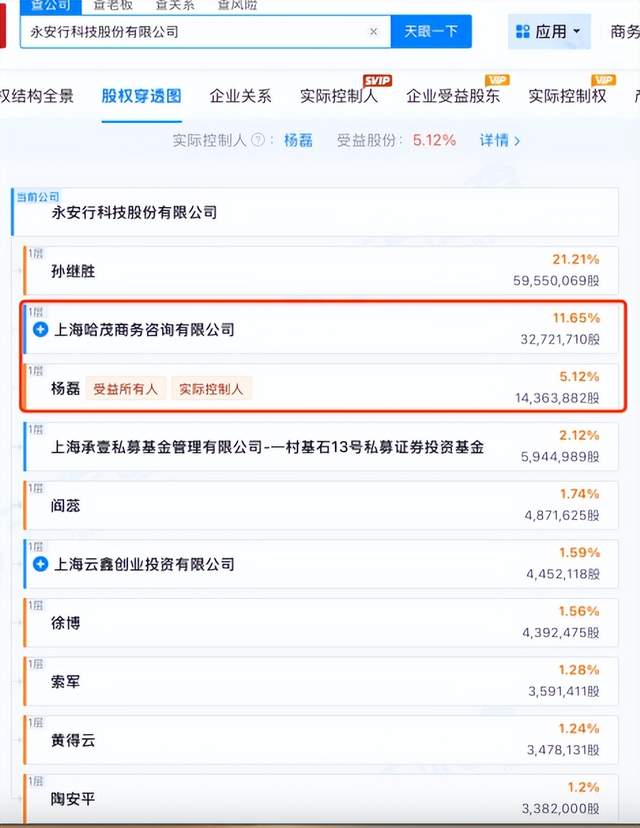 在上市压力下,哈啰将目光投向了A股。2025年3月,创始人杨磊及哈啰系斥资约15亿元,取得上市公司永安行(603776.SH)的控制权,此举被市场普遍解读为哈啰“借壳上市”的关键一步。交易完成后,控股股东变更为上海哈茂(哈啰出行集团全资子公司),持股13.67%,实际控制人变更为杨磊。截至2026年4月3日,上海哈茂持股11.65%,杨磊个人持股5.12%。