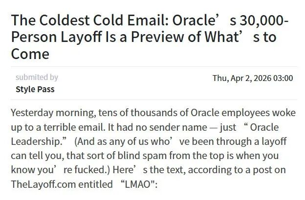 最后我想说:Oracle这次事件之所以值得反复讨论,不是因为它最极端,而是因为它可能很有代表性。