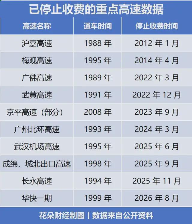 25年6月武汉天河机场高速也免费了,9月四川成绵、成都城北出口高速停收,11月湖南长永高速免费;更早前,深圳2014年花27亿赎回梅观高速,2016年再花130亿回购龙大等高速,提前全免费。