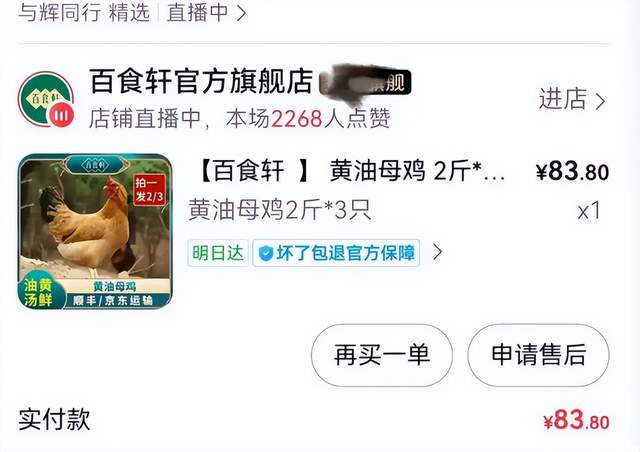 上一次是今年1月份,董宇辉在直播间售卖的一款“大别山黄油母鸡”,遭当地麻黄鸡协会“打假”,后者对该商品的货源、养殖成本、出货数量提出质疑。当时,与辉同行客服称产品已下架,但并未对此有更多回应。