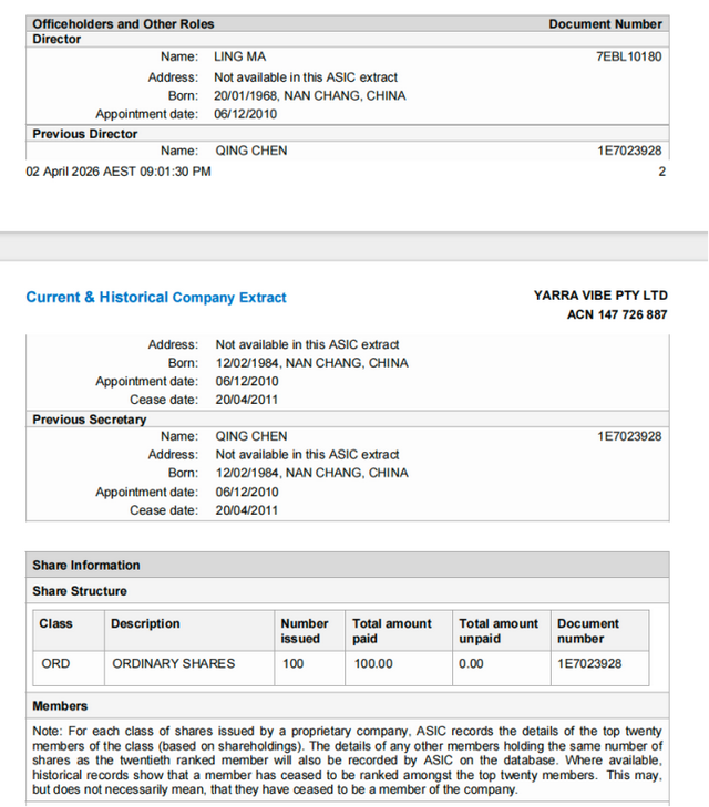 王海根据他搜集到的信息,向我们解释,优思益的实际控制人全是“南昌人”,YARRA VIBE 的唯一董事及100%控股股东名为LING MA(马玲),出生地为中国南昌。前任高管QING CHEN同样来自中国南昌。