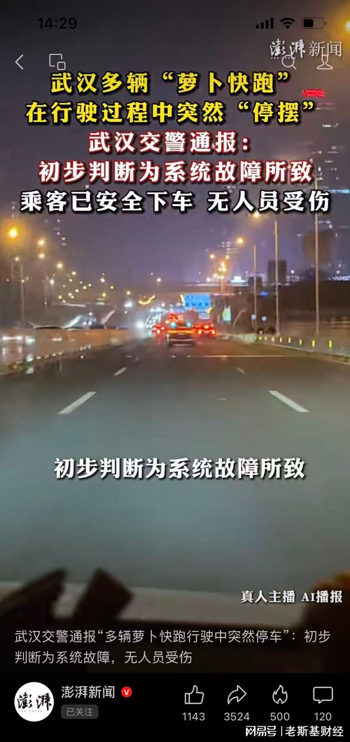 据说当天晚上,这么集体罢工的萝卜快跑有百八十辆,是系统故障导致的。