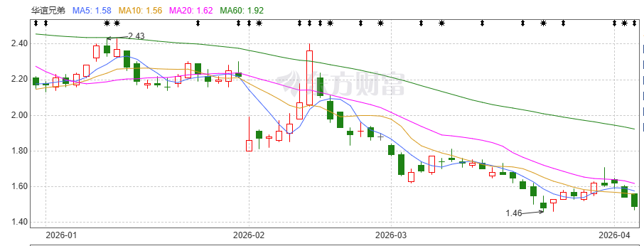 今年以来,华谊兄弟的股价不断走低。4月3日,华谊兄弟的收盘价报1.49元/股,总市值约为41亿元。