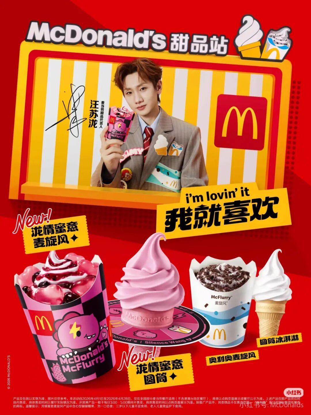麦当劳中国宣布汪苏泷为甜品代言人