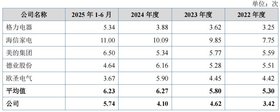 报告期各期末,公司存货账面价值分别为1.857亿元、2.017亿元、3.505亿元及2.658亿元,占报告期各期末总资产的比重分别为21.34%、16.88%、20.08%及13.43%。公司计提存货跌价准备金额分别为732.35万元、952.33万元、1,567.73万元及1,812.02万元,存货跌价准备计提比例分别为3.79%、4.51%、4.28%及6.38%。报告期内,欧伦电气存货周转率分别为3.42次、4.62次、4.10次及5.74次,低于可比同行均值5.30次、5.80次、6.27次及6.23次。