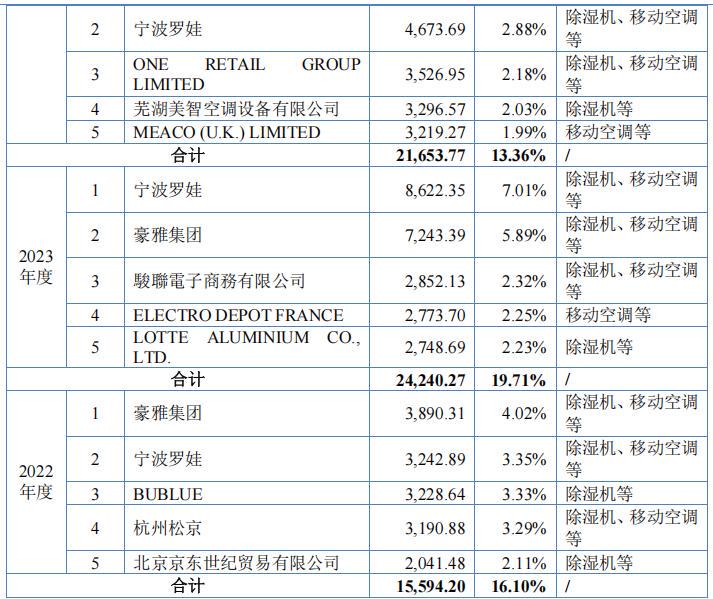 BUBLUE系公司实控人陈先勇、詹小英之子陈骞控制的企业,报告期内,BUBLUE向公司采购除湿机产品并在境外电商平台亚马逊进行销售。公司向BUBLUE销售商品的金额分别为3,228.64万元、242.88万元、43.69万元及0万元,占营业收入的比例分别为3.32%、0.20%、0.03%及0.00%,金额及占比逐年下降。实控人之子控制企业向公司采购商品,从三千多万的采购额突然降低到二百多万到最后归零,其中的原因或许有更多可讨论的地方。