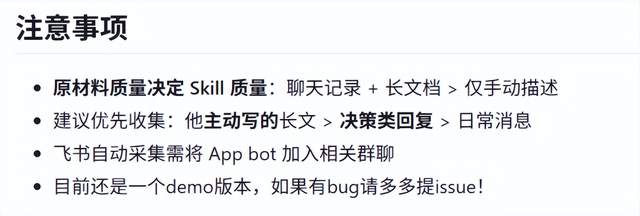 如果你的前同事本来就不爱发消息,聊天记录里都是“收到”“好的”“1”,那生成出来的 Skill 基本就是个复读机。再比如聊天记录里技术讨论很少,大多是闲聊和吐槽,那这个 Skill 也只能陪你闲聊和吐槽。