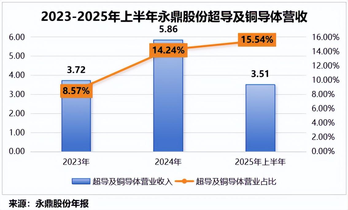 技术突破与商业化落地共同推动超导业务开始贡献实质营收。2025年上半年,公司超导及铜导体业务实现营收3.51亿元,营收占比提升至15.54%。