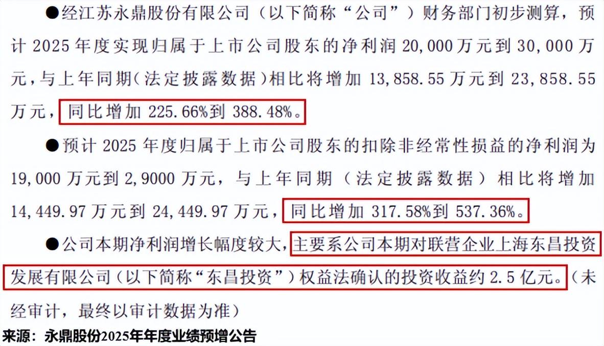 据永鼎股份业绩预告,2025年,公司实现归母净利润2亿元至3亿元,同比增加225.66%至388.48%;扣非净利润1.9亿元到2.9亿元,同比增加317.58%到537.36%。