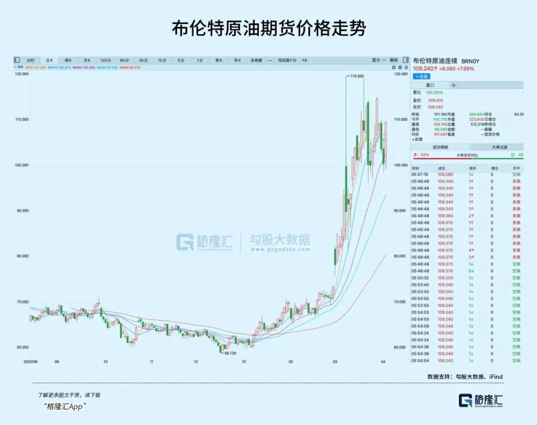 但随着冲突目标向原油基础设施外溢,布伦特原油价格已实质性突破并站稳100-110美元/桶的宽幅震荡区间。供给侧冲击引发的输入性通胀,正在迫使全球资本重新审视“类滞胀”甚至实质性衰退的风险。