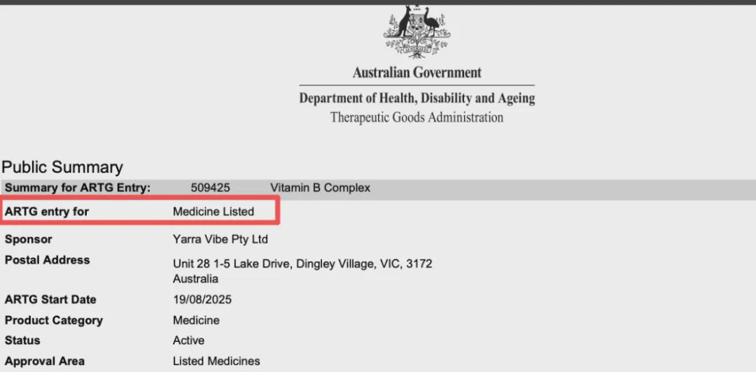 ▲ 优思益旗下维生素B族产品在TGA的登记备案文件