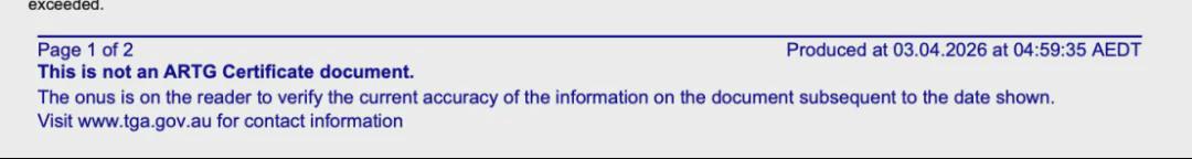 优思益在TGA的备案文件也有明确提示,这份文件并非ARTG(澳大利亚治疗用品注册库)证书文件,不能作为产品已在澳大利亚正式注册的凭证。