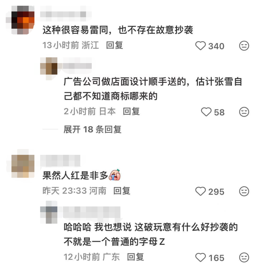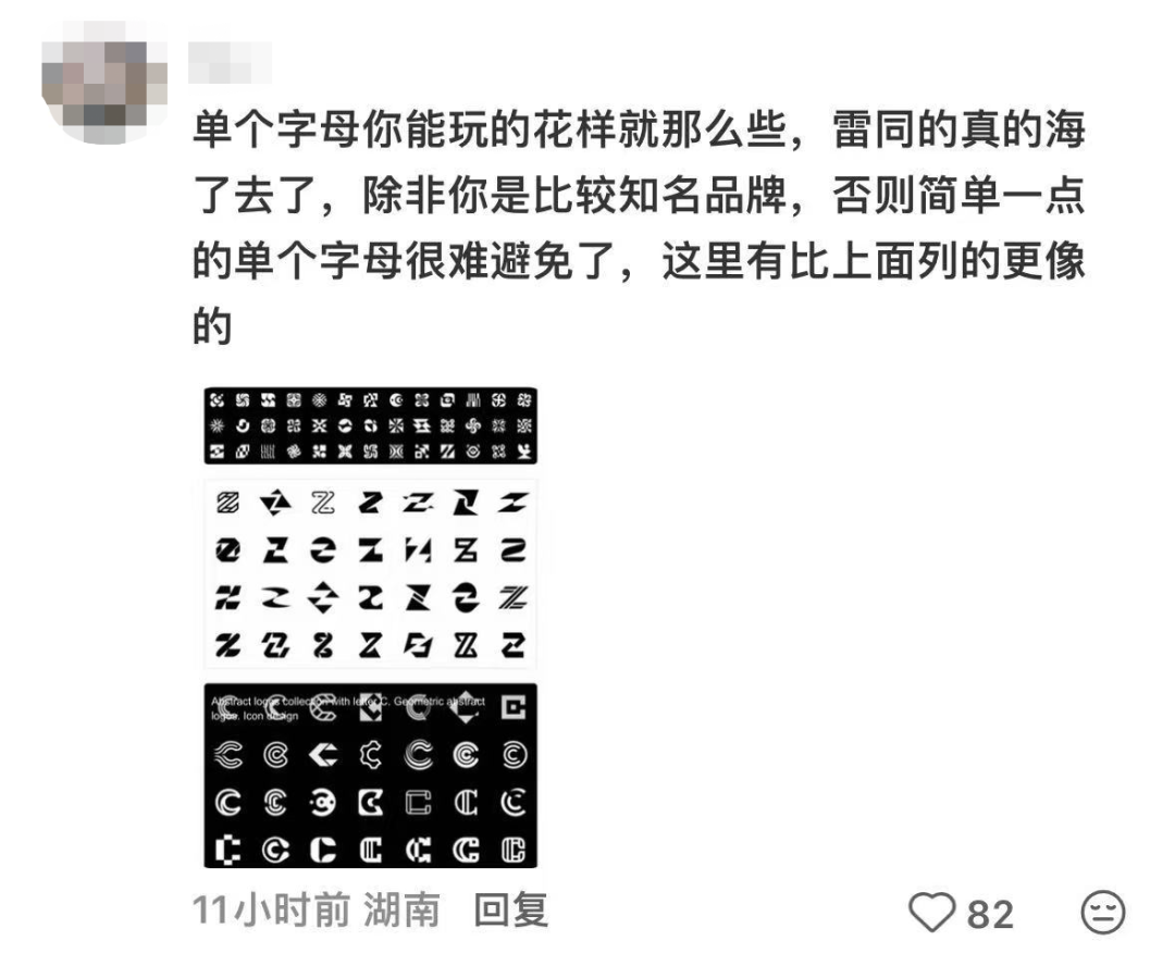 也有人替他说话,“极简风格的字母设计,全球就那么26个字母,撞车不是很正常吗?总不能你用了Z,别人就不能用吧?”