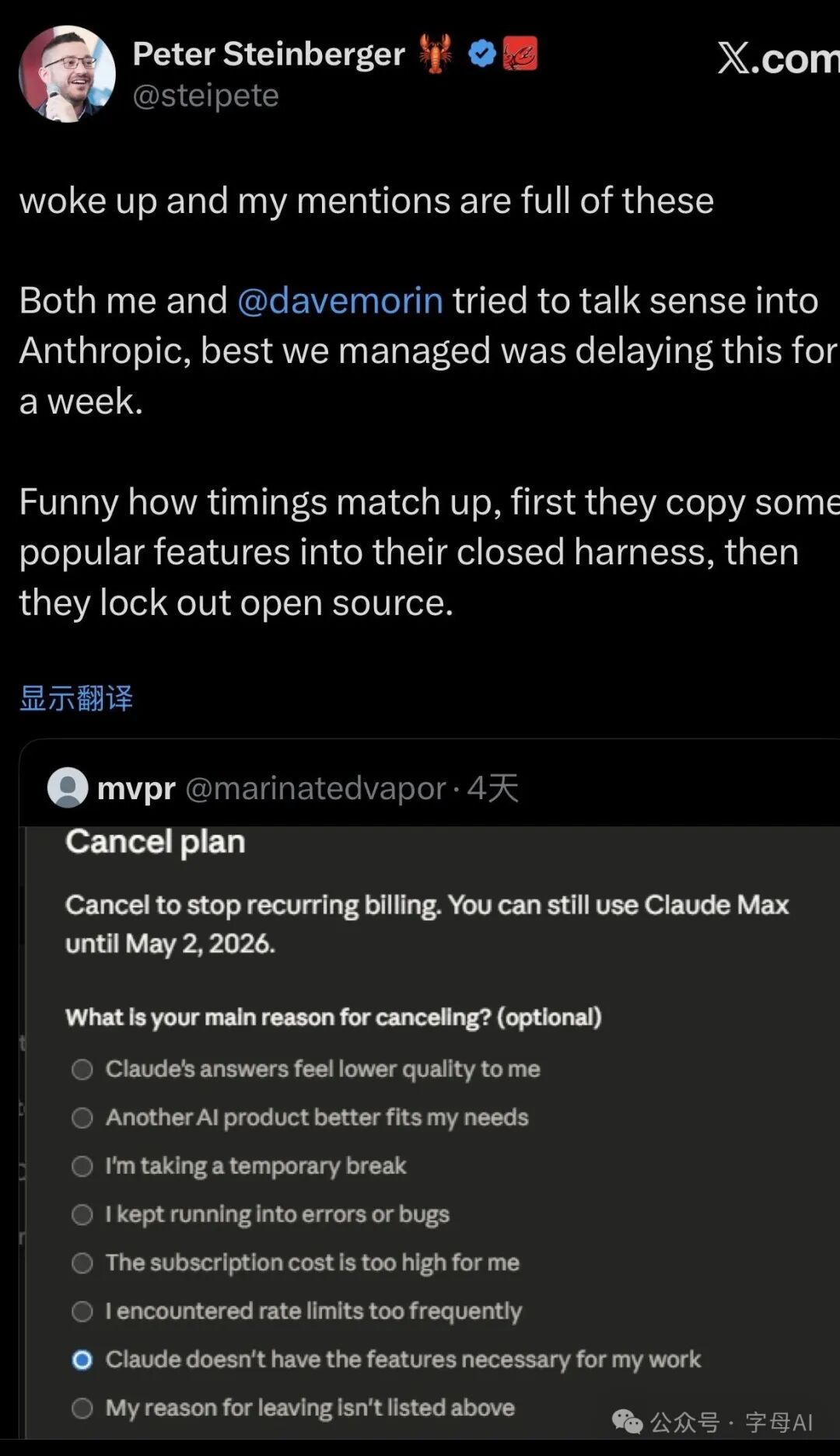 而已经被OpenAI“收编”的OpenClaw创始人Steinberger,在X上“开喷”也带了一丝叫板的意味。