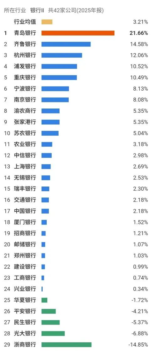在目前已披露年报的A股上市银行中,青岛银行是唯一一家归母净利润增速超过20%的银行,表现格外抢眼。