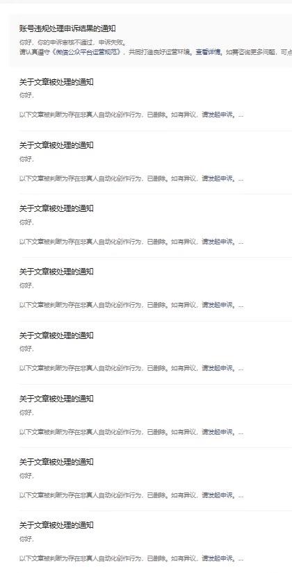 红星资本局4月9日消息,近日,有多位微信公众号运营者反映,其后台文章被批量删除,提示是被平台判定为“存在非真人自动化创作行为”。有运营者认为,这与微信打击非真人AI写作、自动发布有关。