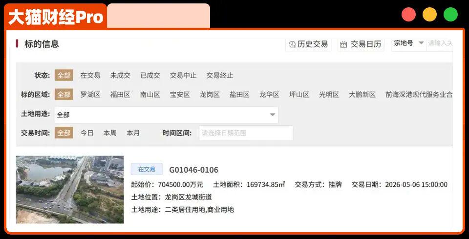 前两天龙岗大运的“深港国际中心”核心地块挂牌重启,起拍价70.45亿元,这是深圳今年挂牌总价最高的项目,5月6号出结果。