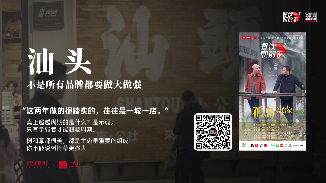 “走出去、做更大、开更多店,对于很多人来说可能有意义。这两年真正做得很踏实、很专注的,往往是一城一店比较稳,他们没有受到扩张之困。反而当年叱咤风云的品牌,现在都遇到了周期之困。真正超越周期的是什么?是示弱。”