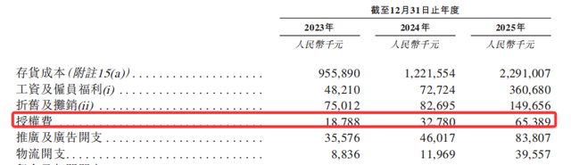 成本端问题也不容忽视。报告期内,IP授权费开支分别为1878.8万元、3278.0万元、6538.9万元,2025年同比增长99.5%,增速远超营收增幅,这反映出TOP TOY对外部IP的极度依赖,授权费用持续增长,对利润形成压力。