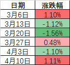 全A平均股价近6个周五涨跌情况