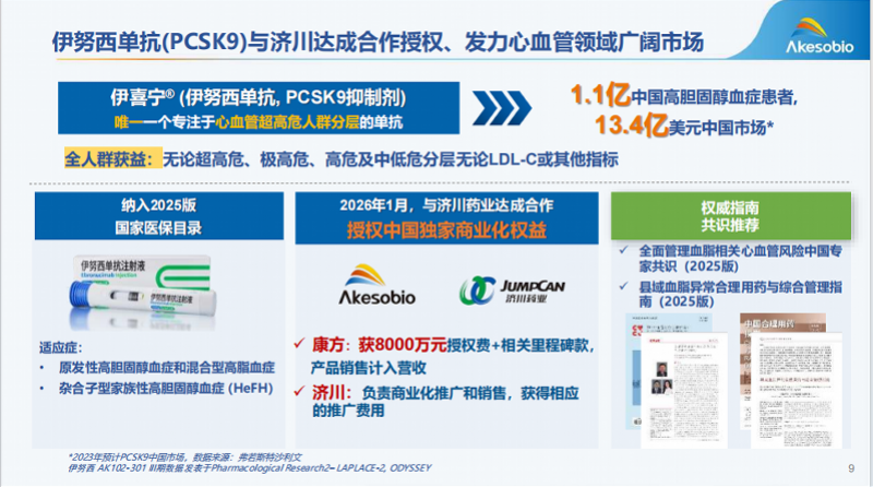 在代谢领域,首款产品PCSK9抑制剂伊努西(伊喜宁®)已于2025年9月获批上市,用于治疗高胆固醇血症。