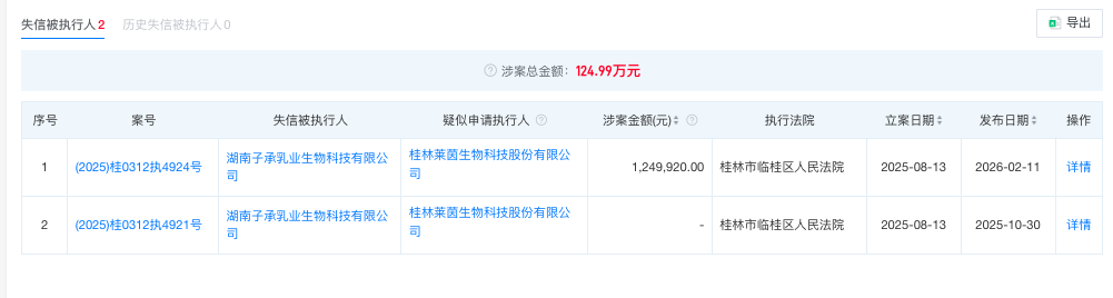 但从2025年下半年开始,子承乳业出现多起诉讼纠纷、经营场所异常、被列为失信被执行人。李帅的个人账号自2025年10月18日后也不再更新。