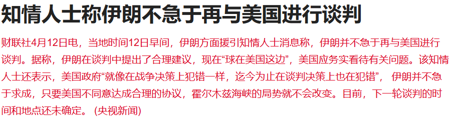 伊朗并不急于再与美国进行谈判。据称,伊朗在谈判中提出了合理建议,现在“球在美国这边”,美国应务实看待有关问题。该知情人士还表示,美国政府“就像在战争决策上犯错一样,迄今为止在谈判决策上也在犯错”, 伊朗并不急于求成,只要美国不同意达成合理的协议,霍尔木兹海峡的局势就不会改变。目前,下一轮谈判的时间和地点还未确定。