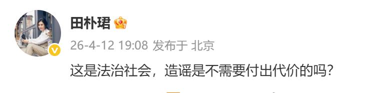 12日傍晚,王石妻子@田朴珺 发文辟谣,“这是法治社会,造谣是不需要付出代价的吗? ”
