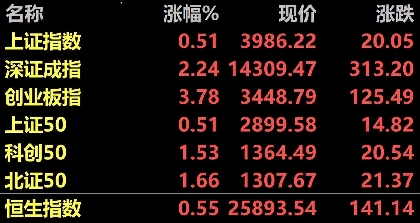 2、两市合计3709只个股上涨,1362只个股下跌;78只个股涨停,13只个股跌停。