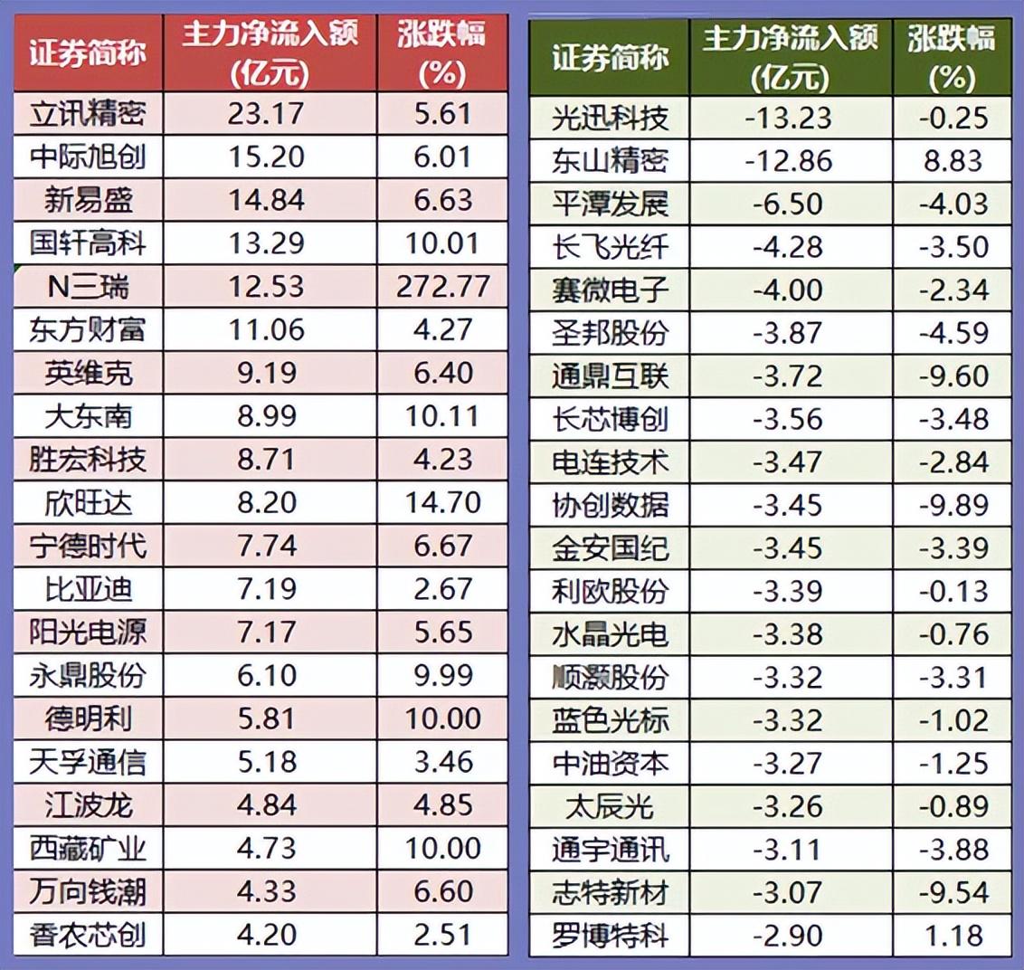 3、两市主力资金净流入131.52亿元——