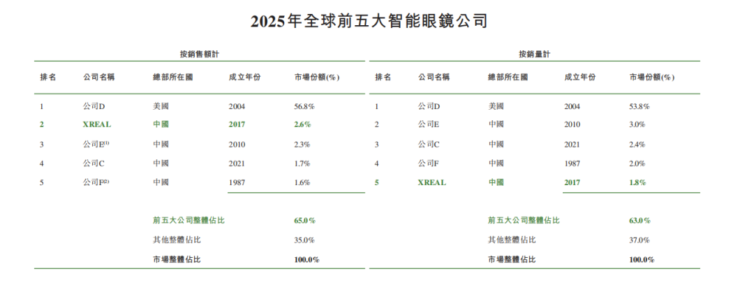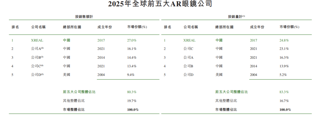 根据招股书披露,这家成立近10年的硬件企业是目前全球规模最大的AR眼镜供应商,连续四年市占率霸榜,拥有全球近三成的市场份额,产品覆盖40个国家和地区,2025年营收超5亿元。