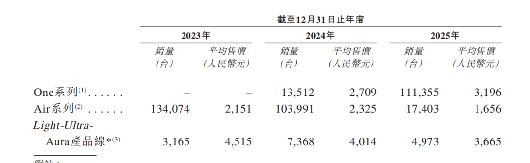 而价格红利的背后,主要得益于公司产品结构的变化。2023—2025年,公司入门级的AIR系列产品销量从13.41万台大幅下滑至1.74万台,累计跌幅高达87%,与之相对,中高端的One系列销量则从2024年的1.35万台扩张至2025年的11.14万台,同比增长了724%。高定价产品占比的提升,也同步拉动了公司毛利率改善,从2023年的18.8%升至2025年的35.2%。