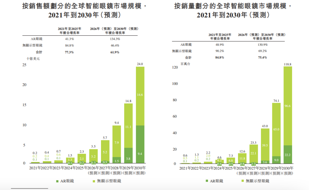 图:全球智能眼镜增长预测 数据来源:XREAL招股书,36氪整理