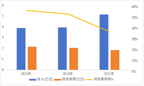 根据招股书数据,2023—2025年,公司研发投入分别为2.16亿、2.04亿、1.83亿,三年累计超6亿,占累计总营收比例高达46%,也就是说公司销售AR眼镜每获取1元的收入差不多就要投入近5毛钱的研发成本来驱动产品创新。