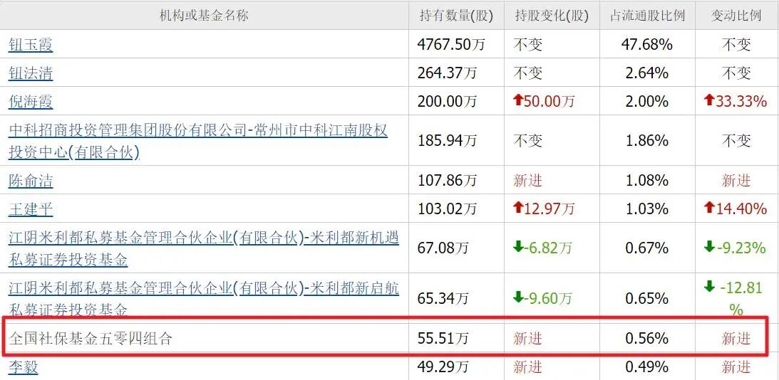 年报社保基金五零四组合新进55万股,位列第九大流通股东。