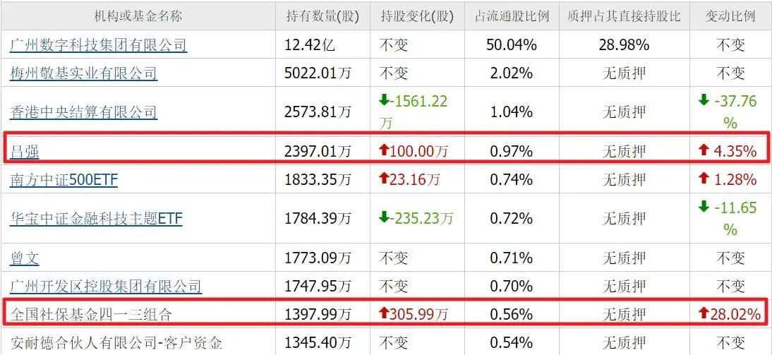 四季度,吕强加仓100万股,合计持有2397万股;社保基金四一三组合加仓305万股,合计持有1397万股。