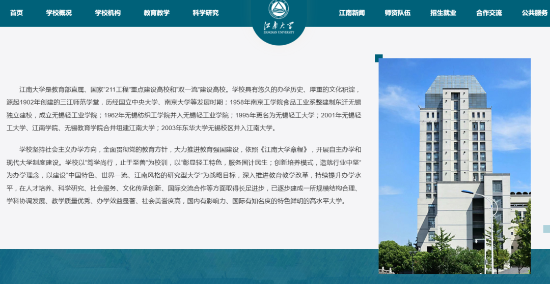 江南大学官网资料显示,该校是国家“211工程”重点建设高校和“双一流”建设高校,历史可以追溯自1902年创建的三江师范学堂。