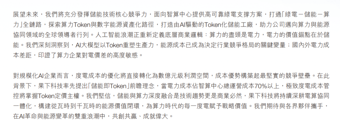 需要重视的是,展望未来,在AI算力的驱动之下,果下科技提出了“储能即Token”的理念,开辟符合时代潮流的全新挣钱途径。