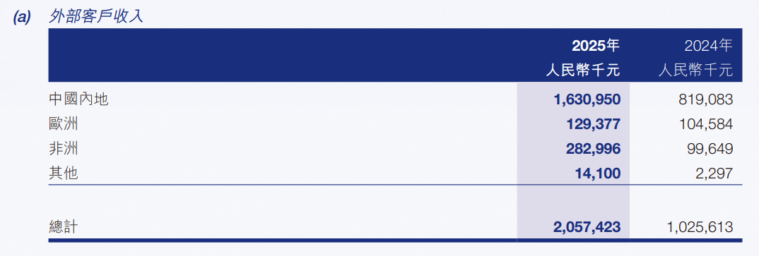 从全球各地区的收入分布来看,中国内地仍然是果下科技的大头,2025年收入人民币16.31亿元,占总营收79%。其他地区以非洲和欧洲占比较大。