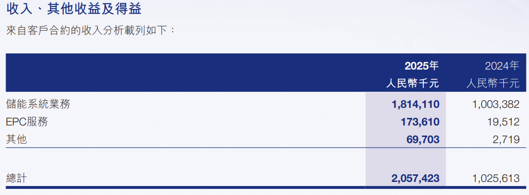 从果下科技的收入分类来看,储能系统业务是重中之重,2025年收入为人民币18.14亿元,占总营收88%,较2024年同比增长80.8%。