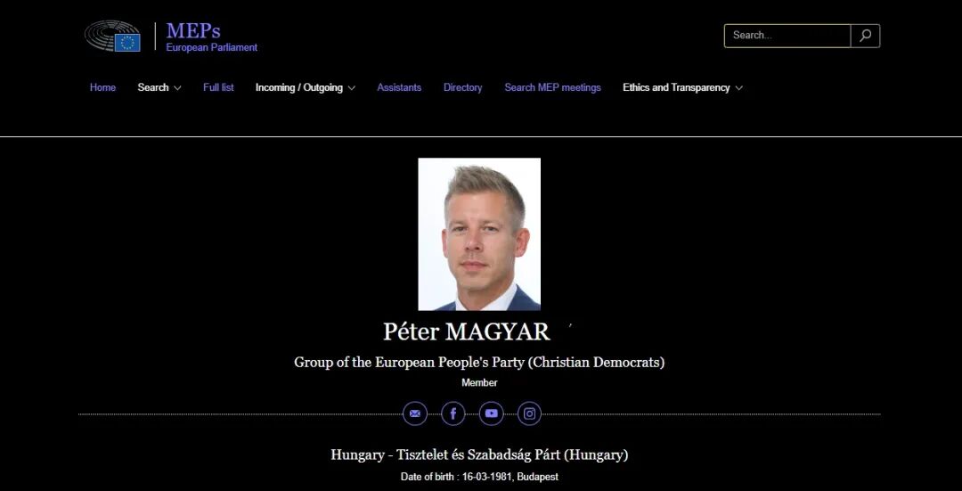 毛焦尔在欧洲议会 (European Parliament) 网站上的个人页面