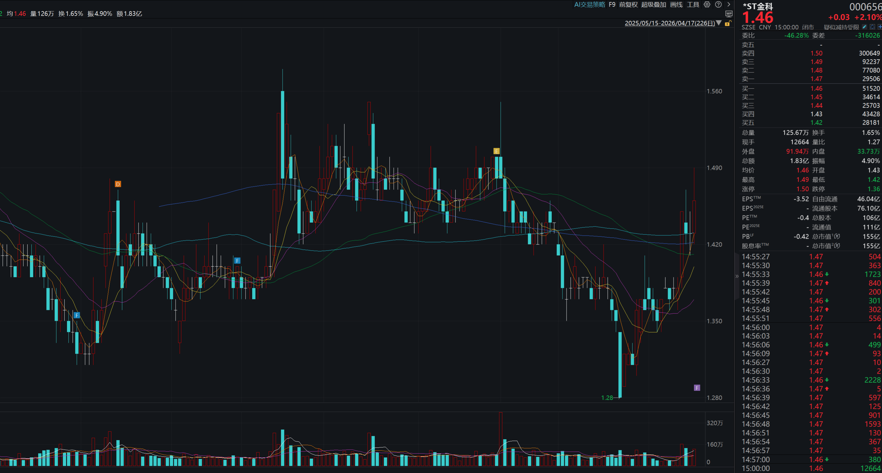 2026年4月17日,*ST金科股价涨停(涨幅5.07%)。公司工作人员对此的回复是,当天整个地产板块都在上涨。