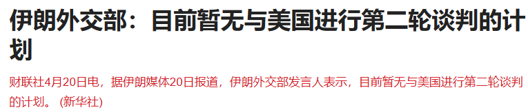 不过,伊朗这边信号比较乱,伊朗外交部发言人表示,目前暂无与美国进行第二轮谈判的计划。