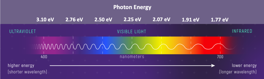 而在光谱里,不同颜色的光携带的能量不一,波长较长的红外光(光子能量<1.12eV)的,那部分就压根派不上用场,可以说是浪费掉了。