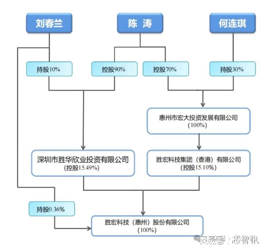 根据胜宏科技披露的信息,截至2025年12月31日,公司董事长陈涛通过直接和间接方式持有公司30.95%股权,为公司实际控制人。公司董事刘春兰女士持有3,151,642股,与陈涛通为夫妻关系。